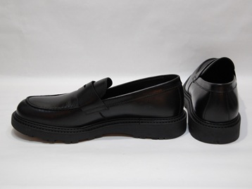 イタリア製、箱付き、新品(未使用)です。 LA CANADIENNE (ラ カナディアン) の ペニーローファー です。 カナダのフットウェアブランドで、主にイタリアで生産されています。 クラシカルでシンプルな、ペニーローファー。 ブラックレザーのアッパーです。 少しボリュームのある厚底のラバーソールにダブルスティッチのコバで、しっかりとしたつくりになってます。 綺麗な洗練されたフォルムで、いい感じの雰囲気です。 オールデンのバンラストとほぼ同じサイズ感です |