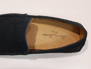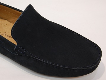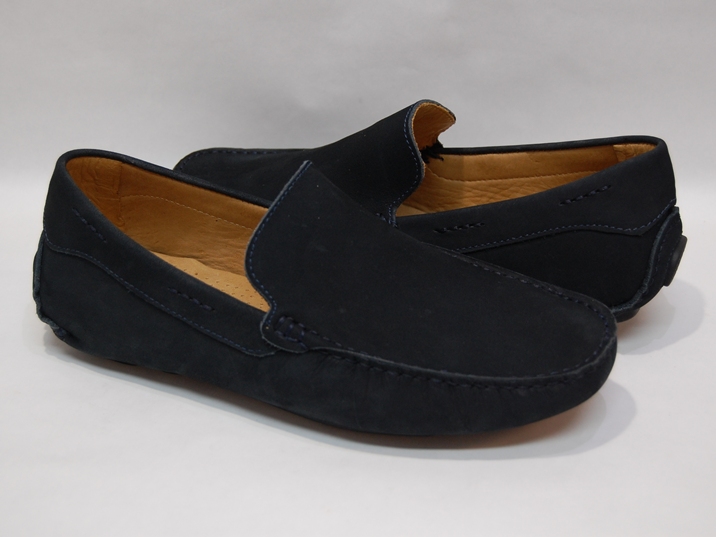 箱付き、新品(未使用)です。 MASSIMO MATTEO (マシモ マテオ) の VENETIAN です。 至ってシンプルなデザインのベネチアンローファー。 ネイビーヌバックのアッパーで、ブラジル製です。 脱ぎ履きが容易で、楽な履き心地です。 |