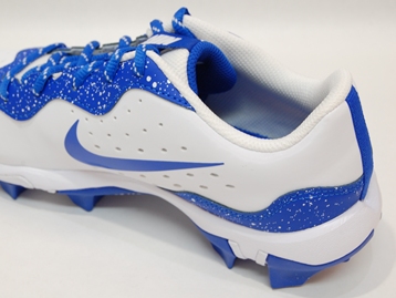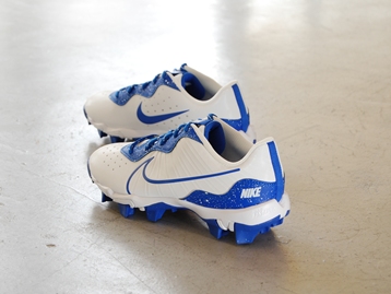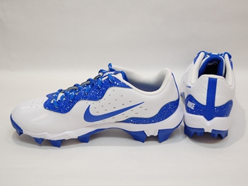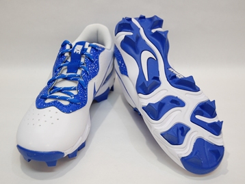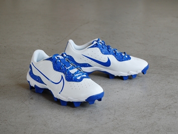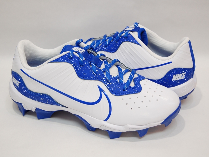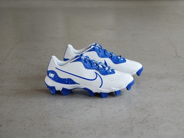 箱付き、新品(未使用)です。 NIKE (ナイキ) の Alpha Huarache 4 Keystone bg (アルファ ハラチ 4 キーストーン グレードスクール) です。 ベースボール スパイクのジュニアモデル。 シンセティック素材のアッパーです。 ホワイトにブルーのカラーリングです。 |