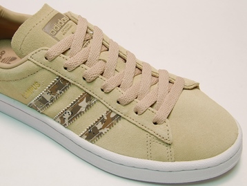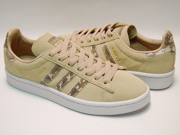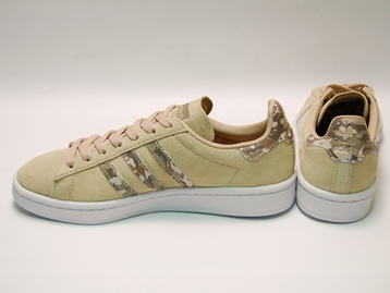 箱付き、新品(未使用)です。 ADIDAS (アディダス) から店舗限定展開で登場した CAMPUS J (キャンパス ジュニア) です。 定番のキャンパスで迷彩をアクセントにした、日本未発売バージョン。 ベージュのスエードをアッパーに使用しています。 3本ラインと踵後部は、迷彩柄のシンセティックレザーです。 ベージュと迷彩が好相性です。 |