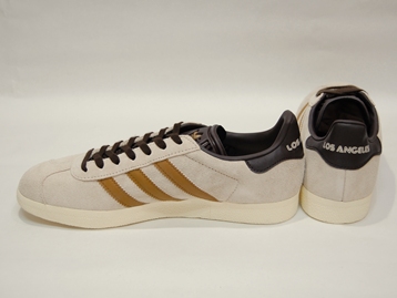 箱付き、新品(未使用)です。 ADIDAS (アディダス) の Gazelle (ガゼル/ガッツレー) です。 ガッツレーの限定バージョンで、Los Angeles FC モデル。 シンセティックレザーとスエードとのコンビアッパーです。 ベージュにブラウンのカラーリングです。 |