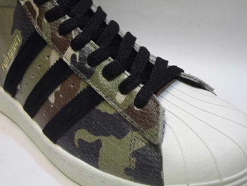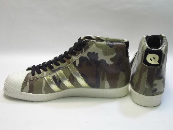 箱付き、新品(未使用)です。 現在庫商品中、箱に少しダメージがあり透明のガムテープで補修してあるものがございます。 どうかご了承の程、宜しくお願いいたします。 ADIDAS(アディダス) から店舗限定展開で登場した PRO MODEL 80S(プロモデル 80S) です。 "COMPLEX MAGAZINE"のスニーカーヘッズショー、"QUICKSTRIKE"とのコラボレーションモデル。 プロモデルの80Sバージョンをベースに、アンティーク加工を施した迷彩柄のレザーで仕上げられています。 外側のストライプはブラックのスエード、内側のストライプはゴールドのレザーです。 マニアックなスペシャルメイクアップモデルです。 オフホワイトとブラックの靴ヒモ、2セットが付属いたします。 |