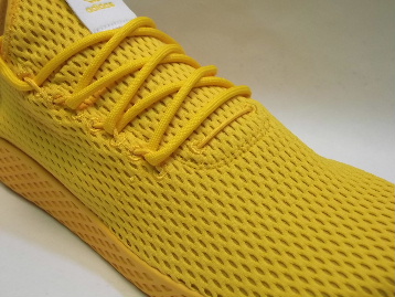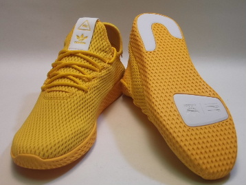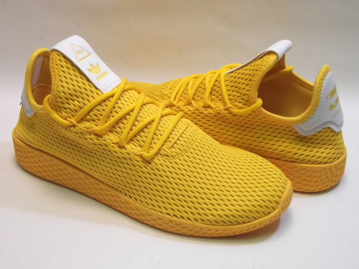 箱付き、新品(未使用)です。 ADIDAS(アディダス) から店舗限定展開で登場した PW TENNIS HU(ファレル ウィリアムス テニス フー) です。 PHARRELL WILLIAMS(ファレル ウィリアムス) とのコラボレーションモデル。 コートシューズとランニングシューズを融合させたスタイルで、シンプルですがインパクトのあるモデルです。 イエローのプライムニットのアッパーです。 とても軽量で、快適なフィッティングと履き心地です。 |