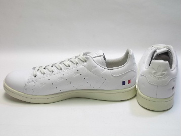 箱付き、新品(未使用)です。 ADIDAS(アディダス) から店舗限定展開で登場した STAN SMITH S.E.(スタンスミス S.E.) です。 "SNEAKER EXCHANGE"シリーズで、アメリカの"ALIFE"とフランスの"STARCOW"の限定タッグモデルです。 スタンスミスがベースで、右足は"STARCOW"ロゴ型押しのアッパーで踵部分にフランスの国旗、左足は"ALIFE"ロゴ型押しのアッパーで踵部分にアメリカの国旗で仕上げられています。 良質なホワイトのプレミアムレザーをアッパーに使用しています。 グローバルな雰囲気のスタンスミスです。 ホワイトとオフホワイトの靴ヒモ、2セットが付属いたします。 |