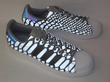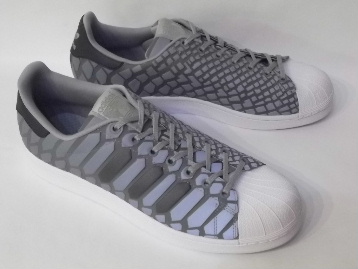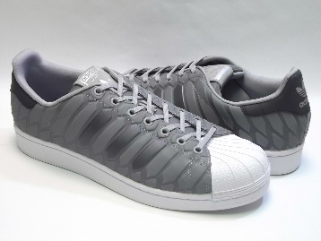箱付き、新品(未使用)です。 ADIDAS (アディダス) から店舗限定展開で登場した SUPER STAR (スーパースター) です。 スーパースターの限定バージョン、"XENO PACK"のワンカラー。 ヘビ科の1種である "XENOPELTIS" からインスパイアされたモデルです。 光の当たり方や明るさによって、さまざまな色合いに変化する玉虫調の特殊素材をアッパーに使用しています。 ベーシックな状態でのベースカラーはグレーです。 相当なインパクトありです。 |