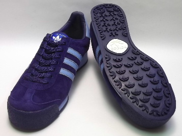 箱付き、新品(未使用)です。 アメリカの ADIDAS(アディダス) から店舗限定展開で登場した SAMOA VNTG(サモア・ヴィンテージ) です。 レトロなランニングシューズのサモアを、ビンテージ仕様で仕上げた限定バージョンです。 ナイトスカイ(ネイビーとパープルの中間色の色合い)スエードのアッパーに、ライトブルーのストライプです。 とても綺麗なカラーリングです。 |