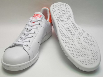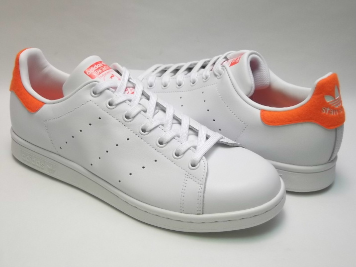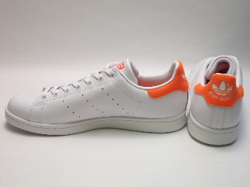 現在庫商品中、US9.5インチの商品は、画像中の最下右の画像のように、右足アッパーつま先部分に、生産時からのシワが少しだけございます。 以上の点、どうかご了承の程宜しくお願いいたします。 箱付き、新品(未使用)です。 アメリカの ADIDAS(アディダス) から店舗限定展開で登場した STAN SMITH(スタンスミス) です。 クラシカルなスタンスミスの踵後部に、オレンジのテニスボール素材を使用した限定バージョンです。 ホワイトのレザーをアッパーに使用しています。 シンプルなクラシックモデルに、一捻りでいい感じです。 |