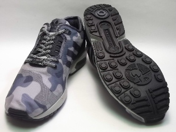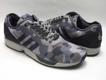 箱付き、新品(未使用)です。 現在庫商品は1足のみで、左足アッパー内側後方及び、右足アッパー外側つま先とソールとの境目付近に、生産過程による透明のボンドが少し付着してしまっています。 どうかご了承の程、宜しくお願いいたします。 アメリカの ADIDAS(アディダス) から店舗限定展開で登場した ZX FLUX DECON(ZX FLUX・ディコンストラクト) です。 シームレスなナイロンメッシュのアッパーで、グレー基調のカモフラパターンです。 綺麗なカラーリングです。 ブラックとチェックパターンの靴ヒモ、2セットが付属いたします。 |
