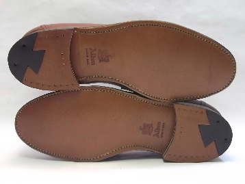 2000年代前半のアメリカ製、箱付き、デッドストック(未使用)です。 シューズバッグが付属します。 現在庫商品は1足のみで、右足のインソールのソックシート(踵下部分のライニング敷物)に、うっすらと小さな円形の汚れがございます。 それから、両足のアッパーに試着によるシワが少し入ってしまっていて、両足のアウトソール表面に少しだけスレがございます。 どうかご了承の程、宜しくお願いいたします。 ALDEN(オールデン)のペニー・ローファーです。 アッパーは、ダーク・コニャックのソフトカーフです。 アウトソールは、ウォーターロック・ソール(雨の吸い上げを防止する為及び、ソールを柔らかくしなやかに曲がるようにする為に、オイルをたっぷり染み込ませたレザーを使用しています)です。 ラストは、COPLEY LAST(コプリー・ラスト)です。 "FLEX WELT"仕様で、柔軟性の高いインソールとウォーターロックアウトソール、柔らかいソフトカーフのアッパーのコンビネーションで、とても柔らかい快適な履き心地です。 |