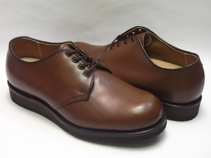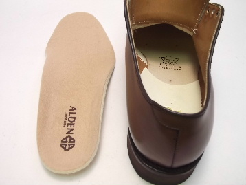 1980年代後半のアメリカ製、箱付き、デッドストック(未使用)です。 シューズバッグは、元々付属いたしません。 ALDEN(オールデン)のプレーントウ・ブルーチャーのオールドモデルです。 アッパーは、ブラウンのソフト・カーフです。 アウトソールは、フラットのクッション・ソールです。 ラストは CDI というラストで、取り外し可能なクッション・インソールが付属しており、インナーのボリュームを調節出来る、かなりゆったりしたラストになっています。 クッション・インソールを入れた状態で履いて頂くとミリタリーラストに近いフィッティングとサイズ感で、インソールを取り外して履くとかなりゆったりしています。 好みに応じて調節可能です。 |