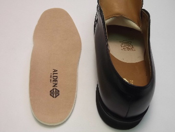 1990年代中頃のアメリカ製、箱付き、デッドストック(未使用)です。 シューズバッグは、元々付属いたしません。 ALDEN(オールデン)のプレーントウ・ブルーチャーのオールドモデルです。 アッパーは、ブラックのソフト・カーフです。 アウトソールは、フラットのクッション・ソールです。 ラストは CDI というラストで、取り外し可能なクッション・インソールが付属しており、インナーのボリュームを調節出来る、かなりゆったりしたラストになっています。 クッション・インソールを入れた状態で履いて頂くとミリタリーラストに近いフィッティングとサイズ感で、インソールを取り外して履くとかなりゆったりしています。 好みに応じて調節可能です。 |