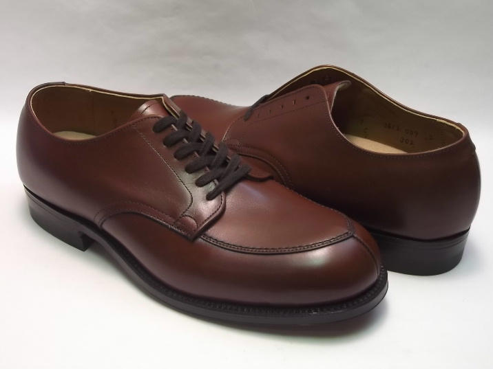 1990年代前半のアメリカ製、箱付き、デッドストック(未使用)です。 シューズバッグは、元々付属いたしません。 こちらの商品に付属しているクッション・インソールは古いタイプな為、インソール表面最上部の薄いテクスタイルが剥がれ易くなっています。 ご使用され始めるとすぐに剥がれてくると思われるので、その際は、ボンドで貼り付け直して頂くか、別のインソールと取り換えて履いて頂くかの対応をして頂きたいと思います。 どうかご了承の程、宜しくお願いいたします。 ALDEN(オールデン)のVチップ・ブルーチャーのオールドモデルです。 アッパーは、ブラウンのカーフです。 アウトソールは、ウォーターロック・ソール(雨の吸い上げを防止する為及び、ソールを柔らかくしなやかに曲がるようにする為に、オイルをたっぷり染み込ませたレザーを使用しています)です。 ラストは CDI というラストで、取り外し可能なクッション・インソールが付属しており、インナーのボリュームを調節出来る、かなりゆったりしたラストになっています。 クッション・インソールを入れた状態で履いて頂くとミリタリーラストに近いフィッティングとサイズ感で、インソールを取り外して履くとかなりゆったりしています。 好みに応じて調節可能です。 |