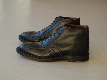 アメリカ製、箱付き、新品(未使用)です。 現在庫商品は1足のみで、箱に少しダメージがございます。 どうかご了承の程、宜しくお願いいたします。 シューズバッグが付属いたします。 ALLEN EDMONDS (アレンエドモンズ) の STIRLING (スターリング) です。 ミッドカットのショートウィングブーツ。 アッパーは、HORWEEN 社の DUBLIN レザーです。 アウトソールは、トラクションラグラバーを使用しています。 気品があり力強さもある、バランスのいい雰囲気のブーツです。 |