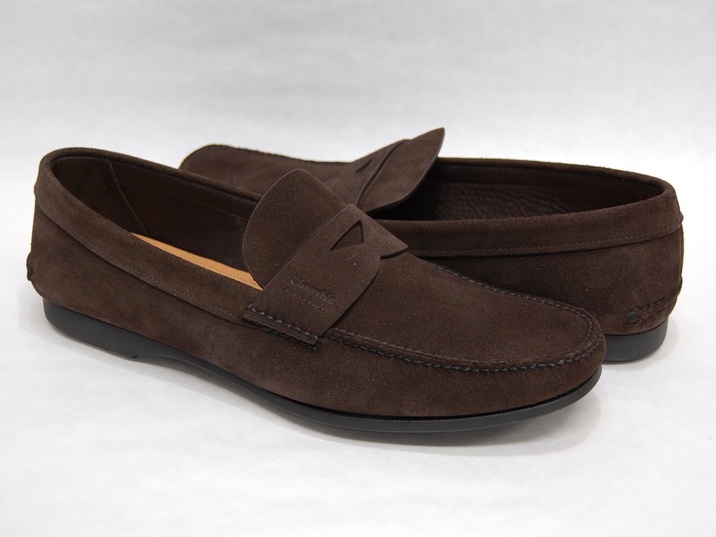 イタリア製、箱付き、新品(未使用)です。 シューズバッグが付属します。 CHURCH (チャーチ) の KARL (カール) です。 カジュアルなペニーモカシン。 アッパーは、ブラウンのスエードです。 アウトソールは、ラバーソールです。 休日に活躍する、カジュアルで品のあるイージーなローファーです。 |