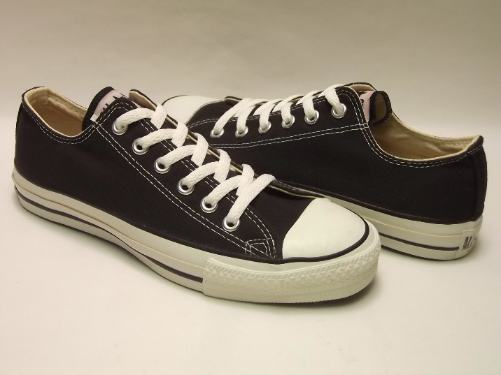 1990年代前半のアメリカ製、箱付き、デッドストック(未使用)です。 箱は、あまり状態が良くなく綺麗ではありません。 アメリカの CONVERSE(コンバース) から登場した、ALL STAR LO(オールスター・ロー) です。 今では生産されていない、希少なアメリカ製時代のデッドストックです。 アッパーは、ブラックのキャンバスです。 最人気で、一番希少色のブラックです。 |
