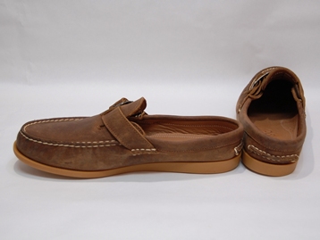 アメリカ製、箱無し、新品(未使用)です。 オリジナルの箱がございませんので、別モデルの箱に入れております。 どうかご了承の程、宜しくお願いいたします。 EASYMOC (イージーモック) の buckle slip-on loafer (バックル スリッポン ローファー) です。 アメリカのメイン州で、2021年に創業したシューズメーカーです。 クラシカルなハンドソーンモックトウで、バックルストラップ仕様のシンプルなスリッポン。 ブラウンレザーのアッパーで、ビブラム社のラバーソールです。 かなりローライズで、ラフなローファースタイルです。 |