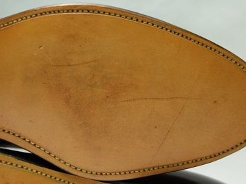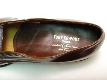 FOOT-SO-PORT(フット・ソ・ポート)のオールドモデルには、アメリカ靴特有の少し粗雑な仕上げ、インソールのフットベッドとソックシートのずれ、インナーに生産過程によるボンドの付着、染料の付着等がある商品がございます。 事前に検品をし、上記内容以外の特筆すべき点は、商品説明欄に記載しております。 あらかじめご了承ください。 1980年代のアメリカ製、オリジナルの箱無し(オリジナルではない、別商品の箱に入っています)、デッドストック(未使用)です。 現在庫商品は1足のみで、両足のアッパーにシワが少し入っていて、両足のアウトソール表面に少しスレと浅い線状の筋がございます。 どうかご了承の程、宜しくお願いいたします。 FOOT-SO-PORT(フット・ソ・ポート)のモックトウ・ブルーチャーのオールドモデルです。 1927年に創業したアメリカの老舗矯正靴メーカーで、独自のフットサポートシステムを開発し、非常にいい革を使用して靴のクオリティーも高く、真面目にいい靴を作るメーカーとして定評がありました。 ここのメーカーの靴は、独特の履き心地で非常に歩きやすいです。 アッパーは、ブラウンのポリッシュドカーフです。 アウトソールはレザーです。 |
