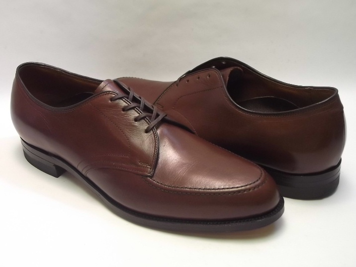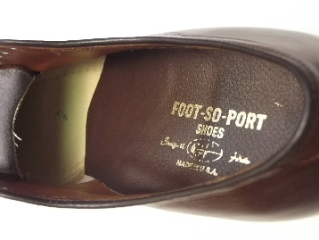 FOOT-SO-PORT(フット・ソ・ポート)のオールドモデルには、アメリカ靴特有の少し粗雑な仕上げ、インソールのフットベッドとソックシートのずれ、インナーに生産過程によるボンドの付着、染料の付着等がある商品がございます。 事前に検品をし、上記内容以外の特筆すべき点は、商品説明欄に記載しております。 あらかじめご了承ください。 1980年代のアメリカ製、オリジナルの箱無し(オリジナルではない、別商品の箱に入っています)、デッドストック(未使用)です。 現在庫商品は1足のみで、両足のアッパーに、試着によるシワが少しだけ入ってしまっています。 それから、左足つま先のスティッチに、ワンスティッチ分ボンドが固まって付着した感じになっています。 どうかご了承の程、宜しくお願いいたします。 FOOT-SO-PORT(フット・ソ・ポート)のモックトウ・ブルーチャーのオールドモデルです。 1927年に創業したアメリカの老舗矯正靴メーカーで、独自のフットサポートシステムを開発し、非常にいい革を使用して靴のクオリティーも高く、真面目にいい靴を作るメーカーとして定評がありました。 ここのメーカーの靴は、独特の履き心地で非常に歩きやすいです。 アッパーは、ブラウンのカーフです。 アウトソールはレザーです。 |
