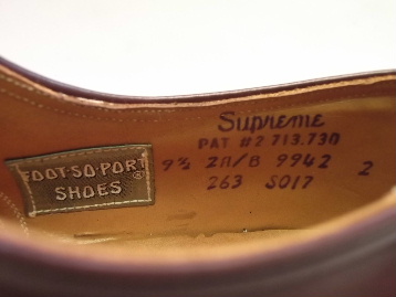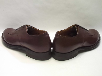 FOOT-SO-PORT(フット・ソ・ポート)のオールドモデルには、アメリカ靴特有の少し粗雑な仕上げ、インソールのフットベッドとソックシートのずれ、インナーに生産過程によるボンドの付着、染料の付着等がある商品がございます。 事前に検品をし、上記内容以外の特筆すべき点は、商品説明欄に記載しております。 あらかじめご了承ください。 1960年代前半のアメリカ製、オリジナルの箱無し(オリジナルではない、別商品の箱に入っています)、デッドストック(未使用)です。 現在庫商品は1足のみで、両足のアッパーに、試着によるシワが少しだけ入ってしまっています。 どうかご了承の程、宜しくお願いいたします。 FOOT-SO-PORT(フット・ソ・ポート)のVチップ・ブルーチャーのオールドモデルです。 1927年に創業したアメリカの老舗矯正靴メーカーで、独自のフットサポートシステムを開発し、非常にいい革を使用して靴のクオリティーも高く、真面目にいい靴を作るメーカーとして定評がありました。 ここのメーカーの靴は、独特の履き心地で非常に歩きやすいです。 アッパーは、チョコレートカラーのカーフです。 アウトソールはレザーで、半カラス仕上げです。 |