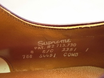 FOOT-SO-PORT(フット・ソ・ポート)のオールドモデルには、アメリカ靴特有の少し粗雑な仕上げ、インソールのフットベッドとソックシートのずれ、インナーに生産過程によるボンドの付着、染料の付着等がある商品がございます。 事前に検品をし、上記内容以外の特筆すべき点は、商品説明欄に記載しております。 あらかじめご了承ください。 1980年代のアメリカ製、オリジナルの箱無し(オリジナルではない、別商品の箱に入っています)、デッドストック(未使用)です。 現在庫商品は1足のみで、両足のアッパーに、試着によるシワが少しだけ入ってしまっています。 それから、右足アッパー外側後方とコバとの境目付近に、生産時からの微妙な色ムラがございます。 どうかご了承の程、宜しくお願いいたします。 FOOT-SO-PORT(フット・ソ・ポート)のプレーントウ・ブルーチャーのオールドモデルです。 1927年に創業したアメリカの老舗矯正靴メーカーで、独自のフットサポートシステムを開発し、非常にいい革を使用して靴のクオリティーも高く、真面目にいい靴を作るメーカーとして定評がありました。 ここのメーカーの靴は、独特の履き心地で非常に歩きやすいです。 アッパーは、バーガンディーのポリッシュドカーフです。 アウトソールはレザーです。 |