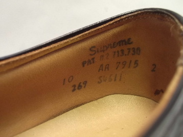 FOOT-SO-PORT(フット・ソ・ポート)のオールドモデルには、アメリカ靴特有の少し粗雑な仕上げ、インソールのフットベッドとソックシートのずれ、インナーに生産過程によるボンドの付着、染料の付着等がある商品がございます。 事前に検品をし、上記内容以外の特筆すべき点は、商品説明欄に記載しております。 あらかじめご了承ください。 1960年代後半のアメリカ製、オリジナルの箱無し(オリジナルではない、別商品の箱に入っています)、デッドストック(未使用)です。 現在庫商品は1足のみで、両足のアッパーに、試着によるシワが少しだけ入ってしまっています。 どうかご了承の程、宜しくお願いいたします。 FOOT-SO-PORT(フット・ソ・ポート)のUチップ・ブルーチャーのオールドモデルです。 1927年に創業したアメリカの老舗矯正靴メーカーで、独自のフットサポートシステムを開発し、非常にいい革を使用して靴のクオリティーも高く、真面目にいい靴を作るメーカーとして定評がありました。 ここのメーカーの靴は、独特の履き心地で非常に歩きやすいです。 アッパーは、ブラックのグレインレザーです。 アウトソールはレザーで、半カラス仕上げです。 |