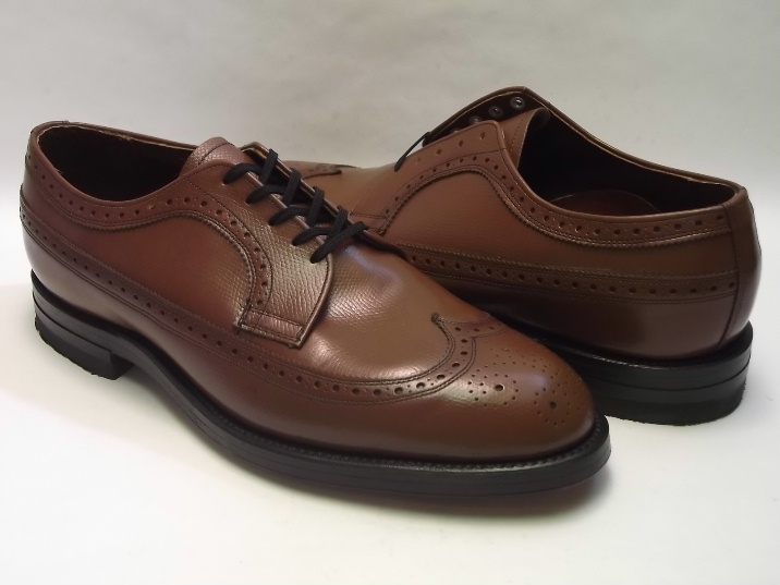 FOOT-SO-PORT(フット・ソ・ポート)のオールドモデルには、アメリカ靴特有の少し粗雑な仕上げ、インソールのフットベッドとソックシートのずれ、インナーに生産過程によるボンドの付着、染料の付着等がある商品がございます。 事前に検品をし、上記内容以外の特筆すべき点は、商品説明欄に記載しております。 あらかじめご了承ください。 現在庫商品中、US10 2Aの商品は、画像中の最下左の画像のように、両足のアッパーに試着によるシワが少しだけ入ってしまっています。 ヒールのトップリフトは、"O'SULLIVAN"です。 現在庫商品中、US10 Eの商品は、両足のアッパーに試着によるシワが少しだけ入ってしまっています。 ヒールのトップリフトは、"VULCAN"です。 現在庫商品中、US10.5 Dの商品は、画像中の最下右の画像のように、右足のつま先部分に、少し色ムラがございます。 それから、両足のアッパーに試着によるシワが少しだけ入ってしまっています。 ヒールのトップリフトは、"VULCAN"です。 以上の点、どうかご了承の程宜しくお願いいたします。 1980年代のアメリカ製、オリジナルの箱無し(オリジナルではない、別商品の箱に入っています)、デッドストック(未使用)です。 FOOT-SO-PORT(フット・ソ・ポート)のロング・ウィングチップ・ブルーチャーのオールドモデルです。 1927年に創業したアメリカの老舗矯正靴メーカーで、独自のフットサポートシステムを開発し、非常にいい革を使用して靴のクオリティーも高く、真面目にいい靴を作るメーカーとして定評がありました。 ここのメーカーの靴は、独特の履き心地で非常に歩きやすいです。 アッパーは、ブラウンのグレインレザーです。 アウトソールはレザーです。 |