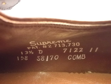 FOOT-SO-PORT(フット・ソ・ポート)のオールドモデルには、アメリカ靴特有の少し粗雑な仕上げ、インソールのフットベッドとソックシートのずれ、インナーに生産過程によるボンドの付着、染料の付着等がある商品がございます。 事前に検品をし、上記内容以外の特筆すべき点は、商品説明欄に記載しております。 あらかじめご了承ください。 現在庫商品中、US8 Dの商品は、画像中の最下左の画像のように、左足アッパー外側最上部に傷の補修跡がございます。 それから、箱はロゴのない無地の箱で、あまり状態が良くなく綺麗ではありません。 ヒールのトップリフトは、"VULCAN"です。 現在庫商品中、US9.5 Aの商品は、画像中の最下右の画像のように、右足アッパーストラップのトンネル上部に、浅い小傷がございます。 ヒールのトップリフトは、"VULCAN"です。 現在庫商品中、US10 2Eの商品は、画像中の最下から2番目右の画像のように、右足のアウトソール表面に傷がございます。 ヒールのトップリフトは、"O'SULLIVAN"です。 現在庫商品中、US13.5 Dの商品は、両足のアウトソール表面に、少しだけスレがございます。 ヒールのトップリフトは、"O'SULLIVAN"です。 以上の点、どうかご了承の程宜しくお願いいたします。 1980年代のアメリカ製、箱付き、デッドストック(未使用)です。 箱はかなりボロボロで、あまり状態が良くなく綺麗ではありません。 FOOT-SO-PORT(フット・ソ・ポート)のトンネルストラップ・ゴアスリッポン・プレーンスクエアトウのオールドモデルです。 1927年に創業したアメリカの老舗矯正靴メーカーで、独自のフットサポートシステムを開発し、非常にいい革を使用して靴のクオリティーも高く、真面目にいい靴を作るメーカーとして定評がありました。 ここのメーカーの靴は、独特の履き心地で非常に歩きやすいです。 アッパーは、ブラウンのカーフです。 アウトソールはレザーです。 |