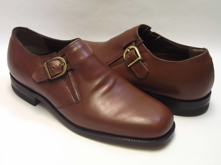 FOOT-SO-PORT(フット・ソ・ポート)のオールドモデルには、アメリカ靴特有の少し粗雑な仕上げ、インソールのフットベッドとソックシートのずれ、インナーに生産過程によるボンドの付着、染料の付着等がある商品がございます。 事前に検品をし、上記内容以外の特筆すべき点は、商品説明欄に記載しております。 あらかじめご了承ください。 現在庫商品中、US7 Dの商品は、画像中の最下左右の画像のように、左足ストラップのスティッチが一部サイドぎりぎりで縫われています。 それから、左足アッパー外側上部に傷の補修跡がございます。 現在庫商品中、US11 Dの商品は、画像中の最下から2番目右の画像のように、右足アッパー外側とソールの境目に、傷の補修跡がございます。 それから、両足のアッパーに試着によるシワが少しだけ入ってしまっていて、両足のアウトソール表面に少しだけスレがございます。 以上の点、どうかご了承の程宜しくお願いいたします。 1980年代のアメリカ製、箱付き、デッドストック(未使用)です。 箱はかなりボロボロで、あまり状態が良くなく綺麗ではありません。 FOOT-SO-PORT(フット・ソ・ポート)のトンネルストラップ・ゴアスリッポン・プレーンスクエアトウのオールドモデルです。 1927年に創業したアメリカの老舗矯正靴メーカーで、独自のフットサポートシステムを開発し、非常にいい革を使用して靴のクオリティーも高く、真面目にいい靴を作るメーカーとして定評がありました。 ここのメーカーの靴は、独特の履き心地で非常に歩きやすいです。 アッパーは、ブラウンのカーフです。 アウトソールはレザーです。 |