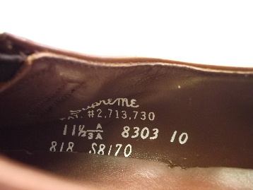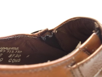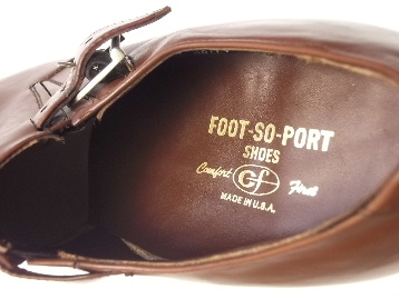 FOOT-SO-PORT(フット・ソ・ポート)のオールドモデルには、アメリカ靴特有の少し粗雑な仕上げ、インソールのフットベッドとソックシートのずれ、インナーに生産過程によるボンドの付着、染料の付着等がある商品がございます。 事前に検品をし、上記内容以外の特筆すべき点は、商品説明欄に記載しております。 あらかじめご了承ください。 現在庫商品中、US7.5 Dの商品は、画像中の最下左右の画像のように、右足のアウトソールに、所々傷がございます。 それから、左足アッパー後部に擦れた感じの傷がございます。 ヒールのトップリフトは、"VULCAN"です。 現在庫商品中、US9.5 3Eの商品は、画像中の最下から4番目左右の画像のように、両足アッパーのつま先及び、右足アッパー内側のアーチ部分に、微妙な色ムラがございます。 それから、両足のアウトソール表面に、少しだけスレがございます。 ヒールのトップリフトは、"VULCAN"です。 現在庫商品中、US10.5 Aの商品は、画像中の最下から6番目右の画像のように、左足インソールに、傷の補修跡がございます。 ヒールのトップリフトは、"VULCAN"です。 現在庫商品中、US11.5 Aの商品は、ヒールのトップリフトは、"VULCAN"です。 現在庫商品中、US13 Aの商品は、画像中の最下から5番目右の画像のように、左足の内側ゴアのゴム最上部に、少したるみがございます。 ヒールのトップリフトは、"BILTRITE"です。 現在庫商品中、US13 Bの商品は、画像中の最下から5番目左の画像のように、両足のアッパーに微妙な色ムラがございます。 それから、両足のアウトソール表面に、少しだけスレがございます。 ヒールのトップリフトは、"VULCAN"です。 現在庫商品中、US13 Eの商品は、画像中の最下から3番目左右の画像のように、左足ストラップのスティッチに、部分的に縫われてない箇所がございます。 それから、左足外側ゴアのゴム上部に少したるみがございます。 ヒールのトップリフトは、"VULCAN"です。 以上の点、どうかご了承の程宜しくお願いいたします。 1980年代のアメリカ製、箱付き、デッドストック(未使用)です。 箱はかなりボロボロで、あまり状態が良くなく綺麗ではありません。 FOOT-SO-PORT(フット・ソ・ポート)のトンネルストラップ・ゴアスリッポン・プレーンスクエアトウのオールドモデルです。 1927年に創業したアメリカの老舗矯正靴メーカーで、独自のフットサポートシステムを開発し、非常にいい革を使用して靴のクオリティーも高く、真面目にいい靴を作るメーカーとして定評がありました。 ここのメーカーの靴は、独特の履き心地で非常に歩きやすいです。 アッパーは、ブラウンのカーフです。 アウトソールはレザーです。 |