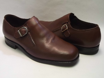 FOOT-SO-PORT(フット・ソ・ポート)のオールドモデルには、アメリカ靴特有の少し粗雑な仕上げ、インソールのフットベッドとソックシートのずれ、インナーに生産過程によるボンドの付着、染料の付着等がある商品がございます。 事前に検品をし、上記内容以外の特筆すべき点は、商品説明欄に記載しております。 あらかじめご了承ください。 現在庫商品中、US9 Eの商品は、両足のアッパーに試着によるシワが少しだけ入ってしまっています。 それから、両足インナーのワイズ表記"E"部分が消されていますが、両足共に"E"ワイズで間違いございません。 現在庫商品中、US9 3Eの商品は、画像中の最下左右の画像のように、両足アッパーつま先のコバ付近に、微妙な色ムラがございます。 それから、左足アッパー外側上部に傷の補修跡がございます。 以上の点、どうかご了承の程宜しくお願いいたします。 1990年のアメリカ製、箱付き、デッドストック(未使用)です。 箱はかなりボロボロで、あまり状態が良くなく綺麗ではありません。 FOOT-SO-PORT(フット・ソ・ポート)のトンネルストラップ・ゴアスリッポン・プレーンスクエアトウのオールドモデルです。 1927年に創業したアメリカの老舗矯正靴メーカーで、独自のフットサポートシステムを開発し、非常にいい革を使用して靴のクオリティーも高く、真面目にいい靴を作るメーカーとして定評がありました。 ここのメーカーの靴は、独特の履き心地で非常に歩きやすいです。 アッパーは、ブラウンのカーフです。 アウトソールはレザーです。 |