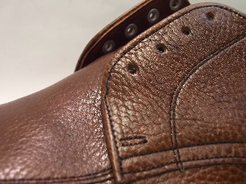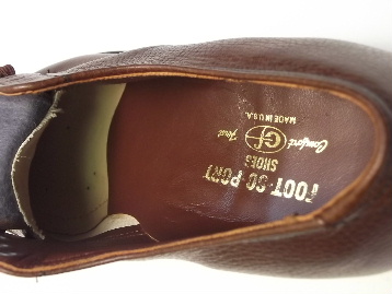 FOOT-SO-PORT(フット・ソ・ポート)のオールドモデルには、アメリカ靴特有の少し粗雑な仕上げ、インソールのフットベッドとソックシートのずれ、インナーに生産過程によるボンドの付着、染料の付着等がある商品がございます。 事前に検品をし、上記内容以外の特筆すべき点は、商品説明欄に記載しております。 あらかじめご了承ください。 現在庫商品中、US9 Aの商品は、ヒールのトップリフトは、"WINGFOOT"です。 現在庫商品中、US9 Bの商品は、画像中の最下から2番目左の画像のように、右足インナー継ぎ目の上部が、一部めくれて縫われてしまっています。 それから、両足のアウトソール表面に、少しだけスレがございます。 ヒールのトップリフトは、"VULCAN"です。 現在庫商品中、US9.5 Aの商品は、画像中の最下から2番目右の画像のように、左足アッパー外側アイレット下部のスティッチが、一部ガタガタになってしまっています。 ヒールのトップリフトは、"WINGFOOT"です。 現在庫商品中、US11.5 Cの商品は、両足のアウトソール表面に、少しだけスレがございます。 ヒールのトップリフトは、"VULCAN"です。 以上の点、どうかご了承の程宜しくお願いいたします。 1980年代のアメリカ製、オリジナルの箱無し(オリジナルではない、別商品の箱に入っています)、デッドストック(未使用)です。 FOOT-SO-PORT(フット・ソ・ポート)のオーバーレイプラグトウ・ブルーチャーのオールドモデルです。 1927年に創業したアメリカの老舗矯正靴メーカーで、独自のフットサポートシステムを開発し、非常にいい革を使用して靴のクオリティーも高く、真面目にいい靴を作るメーカーとして定評がありました。 ここのメーカーの靴は、独特の履き心地で非常に歩きやすいです。 アッパーは、ブラウンのグレインレザーです。 アウトソールはレザーです。 |