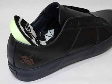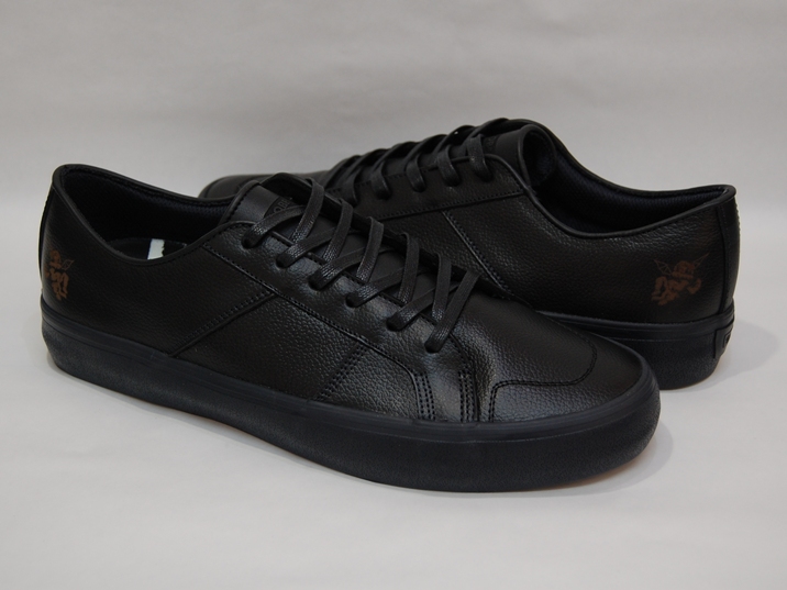 箱付き、新品(未使用)です。 GLOBE (グローブ) の SURPLUS (サープラス) です。 定番のスケートボーディングシューズ SURPLUS の限定バージョン Val Bauer モデル。 ブラックレザーのアッパーで、ソールはわずかに青味のあるカラーになってます。 カップインソール仕様で、快適なクッショニングです。 ブラックとドットパターンの靴ヒモ、2セットが付属します。 |