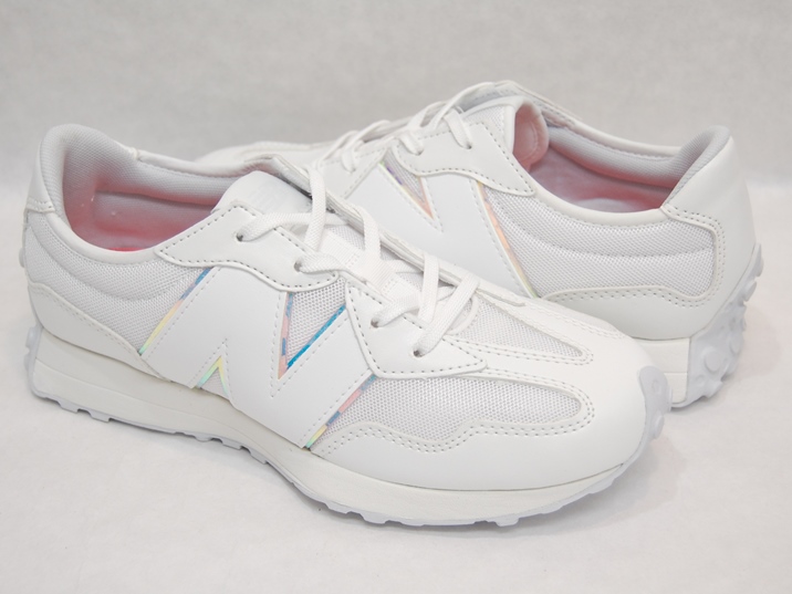 | 現在庫商品は全てMワイズで、普通の横幅の方に適しています。 箱付き、新品(未使用)です。 NEW BALANCE (ニューバランス) の GS327 です。 独特なフォルムのニューモデル、327の限定バージョン。 ナイロンメッシュとシンセティックレザーとのコンビアッパーです。 キラキラ素材がアクセントになってます。 |