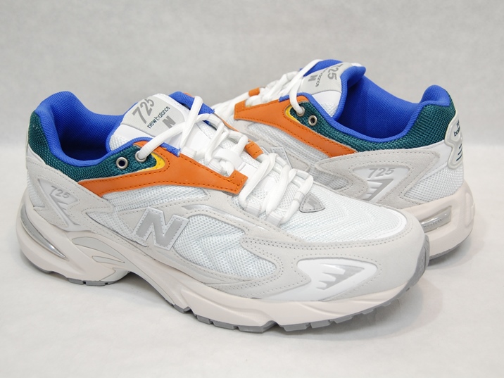 | ワイズ(靴のサイズ表記で、足前方の指の付け根付近で一番横幅が広い部分の広さ)は、D,2E,4Eとあり、Dワイズは普通の広さで、2Eはワイド、4Eはエキストラワイドになります。 箱付き、新品(未使用)です。 NEW BALANCE (ニューバランス) の ML725 です。 スポーティなランニングモデルで、限定カラーバージョン。 ナイロンメッシュとシンセティックレザー、スエードとのコンビアッパーです。 グレーにオレンジとグリーンがアクセントになったカラーリングです。 |