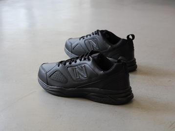 | ワイズ(靴のサイズ表記で、足前方の指の付け根付近で一番横幅が広い部分の広さ)は、D,2E,4Eとあり、Dワイズは普通の広さで、2Eはワイド、4Eはエキストラワイドになります。 NEW BALANCE (ニューバランス) の MX623 V3 です。 アメリカのニューバランスから展開されている、適度なボリューム感の MX623 V3。 ブラックのシンセティックレザーのアッパーです。 今っぽいフォルムのボリューム感です。 |