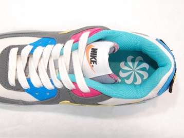 箱付き、新品(未使用)です。 NIKE (ナイキ) の AIR MAX 90 GS (エアマックス 90 グレードスクール) です。 エアマックス90の限定バージョンで "AIR SPRUNG" モデル。 レザーとシンセティックレザー、テクスタイルとのコンビアッパーです。 カラフルなカラーリングです。 |