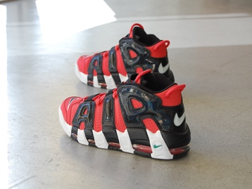 箱付き、新品(未使用)です。 NIKE (ナイキ) の Air More Uptempo 96 (エア モア アップテンポ 96) です。 エアモアアップテンポの "I GOT NEXT" モデルで、ロブスターカラー。 シンセティックレザーのアッパーです。 コントラストのあるカラーリングになってます。 |
