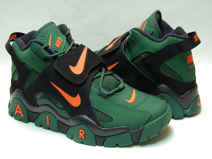 箱付き、新品(未使用)です。 現在庫商品は1足のみで、このモデルに本来付属するキーチェーンが紛失しています。 それから、箱に少しダメージがございます。 どうかご了承の程、宜しくお願いいたします。 NIKE (ナイキ) の AIR BARRAGE MID (エア バラージ ミッド) です。 1995年に登場したモデルの、限定復刻バージョンです。 エア バラージ ミッドのスーパーボウル記念モデルで、日本未発売。 NFLの第54回"SUPER BOWL"記念で、"MIAMI HURRICANES"カラーで仕上げられています。 グリーンとブラックのシンセティックレザーと、ナイロンメッシュのコンビアッパーです。 モアテンに似た、90年代らしいフォルムデザインです。 |