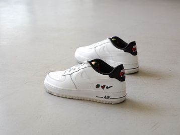 箱付き、新品(未使用)です。 NIKE (ナイキ) の air force 1 lv8 1 gs (エアフォースワン エレベイト 1 グレードスクール) です。 人気定番モデル、エアフォースワンの海外限定 "PEACE LOVE SWOOSH" モデル。 ホワイトレザーのアッパーです。 インソールとタンがカラフルになってます。 |