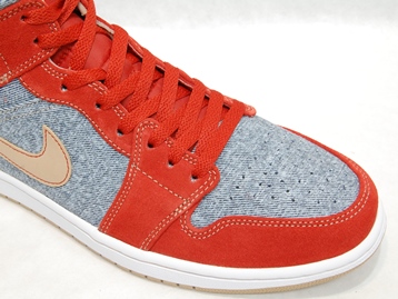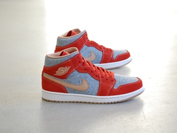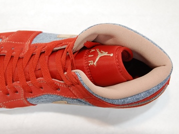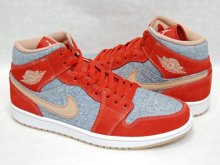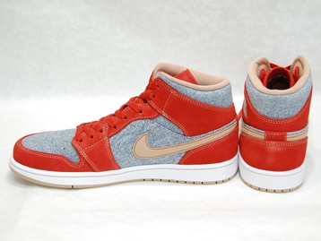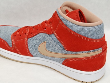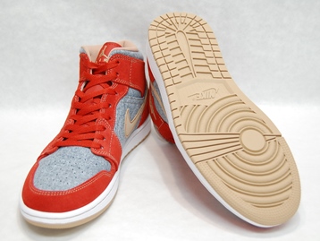 箱付き、新品(未使用)です。 NIKE (ナイキ) の AIR JORDAN 1 MID SE (エアジョーダン 1 ミッド スペシャルエディション) です。 アッパーにデニムを使用した、海外限定バージョンのエアジョーダンワン。 レッドとオレンジの中間色の色合いのスエードと、デニムとのコンビアッパーです。 希少な、アッパーにデニムを使用したバージョンです。 |