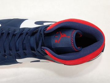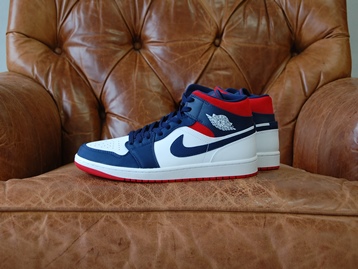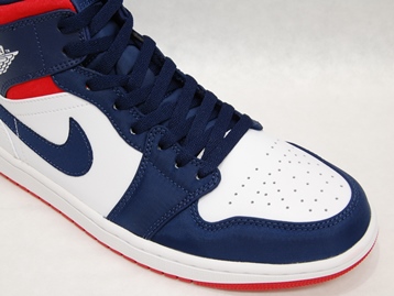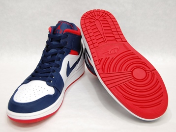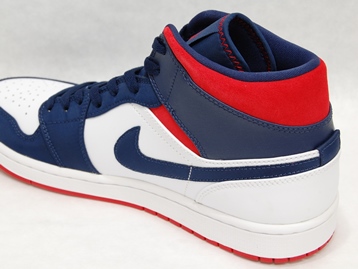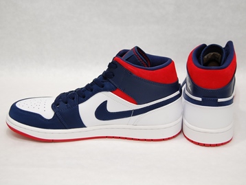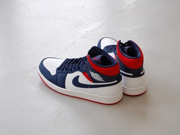 箱付き、新品(未使用)です。 NIKE (ナイキ) の AIR JORDAN 1 MID SE (エアジョーダン 1 ミッド スペシャルエディション) です。 AJ1 MIDの"USA"モデルで、US限定バージョン。 ホワイトレザーとネイビーレザー、テクスタイル、レッドスエードとのコンビアッパーです。 星条旗カラーで仕上げられた、アメリカンなエアジョーダンワンです。 |