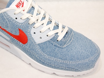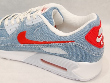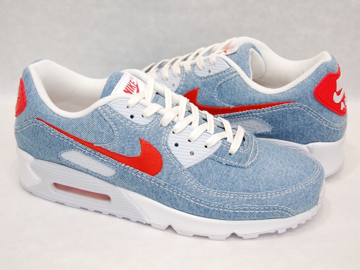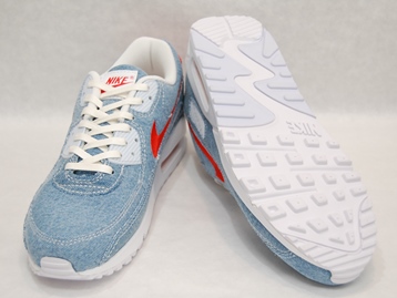箱付き、新品(未使用)です。 NIKE (ナイキ) の AIR MAX 90 (エアマックス 90) です。 エアマックス90のアッパーに、デニムを使用した限定バージョン。 ライトブルーのデニムがベースのアッパーです。 レッドがアクセントの綺麗なカラーリングです。 |
