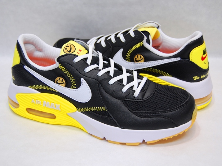 箱付き、新品(未使用)です。 NIKE (ナイキ) の Air Max Excee (エア マックス エクシー) です。 エア マックス エクシーの "GO THE EXTRA SMILE" モデル。 シンセティックレザーと、ナイロンメッシュとのコンビアッパーです。 コントラストの効いたカラーリングに、スマイルがポイントです。 |