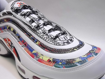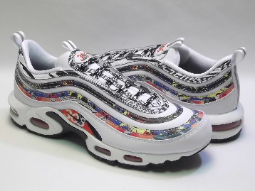 箱付き、新品(未使用)です。 NIKE (ナイキ) から店舗限定展開で登場した AIR MAX PLUS 97 (エア マックス プラス 97) です。 エアマックス97のアッパーに、エアマックスプラスのソールを融合させたハイブリットモデルで、日本未発売。 CITY PRIDE (シティ プライド) シリーズの、MIAMI (マイアミ)バージョンです。 ホワイトのシンセティックレザーとリップストップ素材をベースに、マイアミをイメージしたプリントで仕上げられています。 マイアミのエリアコード"305"とヤシの木が、随所に入ったスペシャルメイクアップモデルです。 |