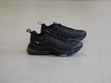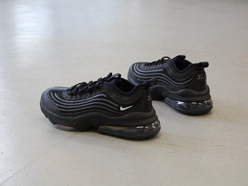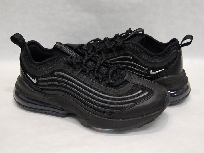 箱付き、新品(未使用)です。 NIKE (ナイキ) の air max zm950 gs (エアマックス ZM950 グレードスクール) です。 エアマックス95の25周年記念、アップデートモデル。 ブラックベースのシンセティックレザー、ナイロンメッシュとのコンビアッパーです。 進化した履き心地とルックスです。 |