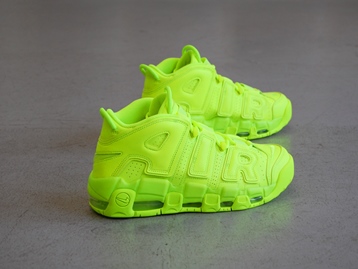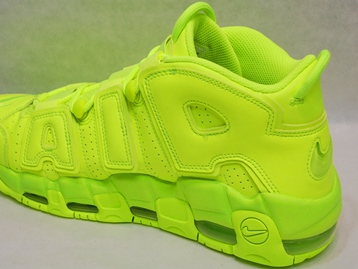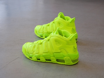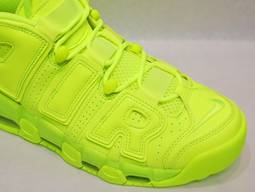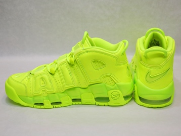 箱付き、新品(未使用)です。 NIKE (ナイキ) の air more uptempo 96 (エア モア アップテンポ 96) です。 モアテンの限定バージョンで、ヴォルトのオールワンカラー。 レザーとシンセティックレザーとのコンビアッパーです。 眩しいヴォルトカラーです。 |
