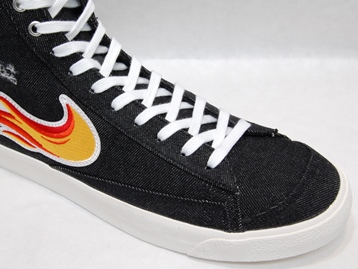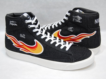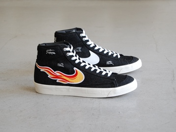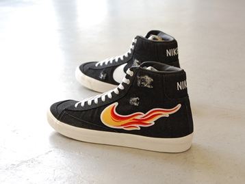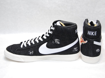 箱付き、新品(未使用)です。 NIKE (ナイキ) の BLAZER MID 77 VNTG (ブレイザー ミッド 77 ヴィンテージ) です。 ブレイザーミッドがベースで、ロックンロール発祥の地をセレブレイトした CLEVELAND ROCKS モデル。 ブラックデニムのアッパーで、ダメージ加工が施されています。 アッパー外側はファイアーパターンで、内側はホワイトスウォッシュになってます。 |