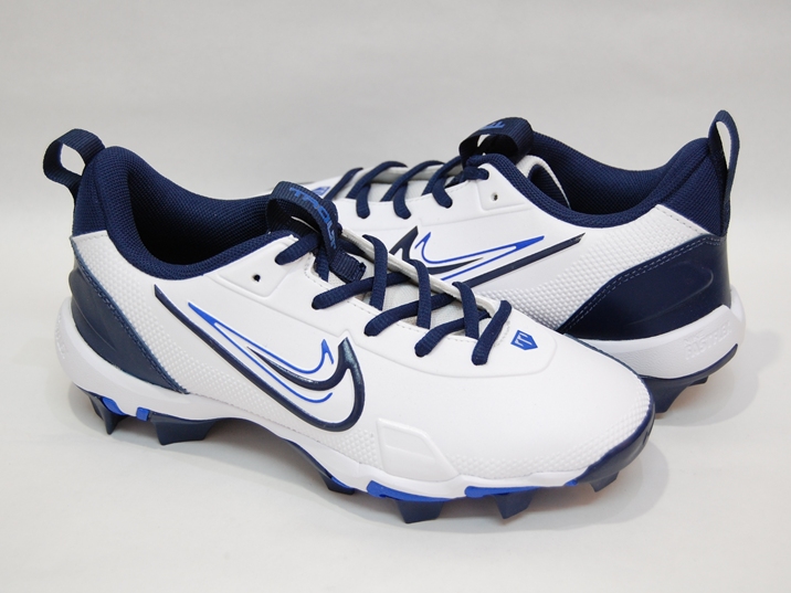 箱付き、新品(未使用)です。 NIKE (ナイキ) の Force Trout 9 Keystone BG (フォース トラウト 9 キーストーン グレードスクール) です。 ベースボール スパイクのジュニアバージョンで、マイクトラウトのシグニチャーモデル。 シンセティック素材のアッパーです。 ホワイトベースのカラーリングです。 |