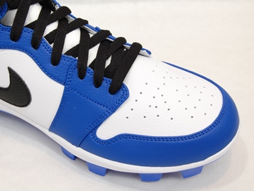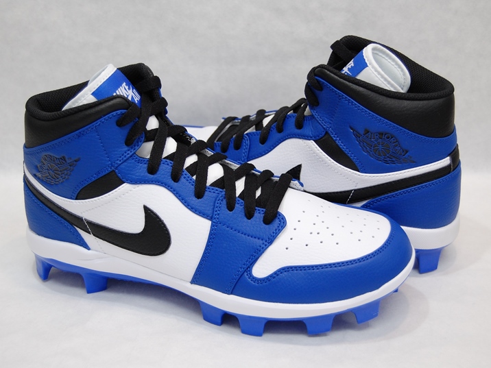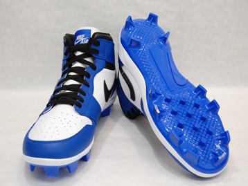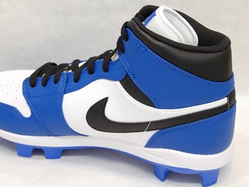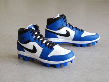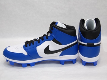 箱付き、新品(未使用)です。 NIKE (ナイキ) の Jordan 1 Retro MCS (ジョーダン 1 レトロ MCS) です。 エアジョーダン 1 のハイカットをベースに仕上げられたベースボールスパイク。 シンセティックレザーのアッパーです。 ホワイトにブルーとブラックのカラーリングです。 |
