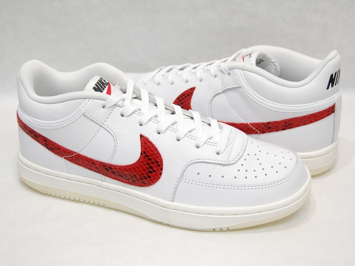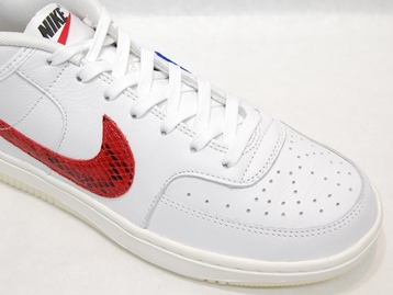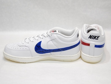 箱付き、新品(未使用)です。 NIKE (ナイキ) の sky force 3/4 (スカイフォース 3/4) です。 クラシカルなバッシュの限定復刻モデルで、マルチスウォッシュバージョン。 ホワイトのレザーをアッパーに使用しています。 外側はレッドスネーク、内側はブルースネークのスウォッシュです。 |